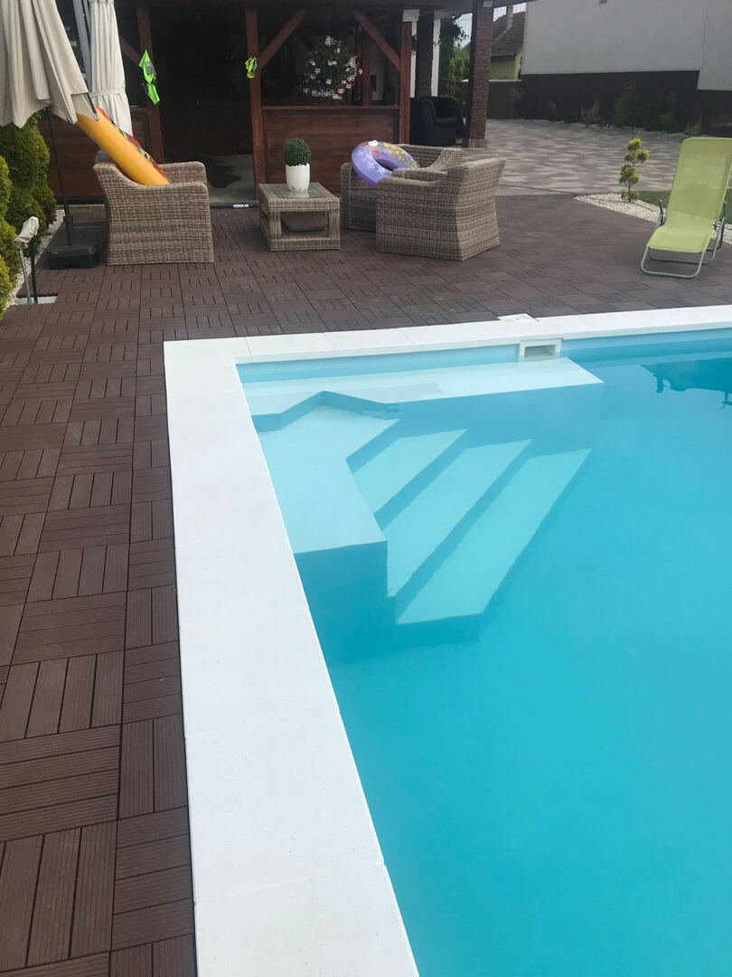 Csak bevált technológiákkal és minőségi alapanyagokkal dolgozunk, amelyek ellenállnak az időjárási hatásoknak és a folyamatos használatnak. Ez biztosítja, hogy medencéje évek, sőt évtizedek múlva is esztétikus és üzembiztos maradjon.